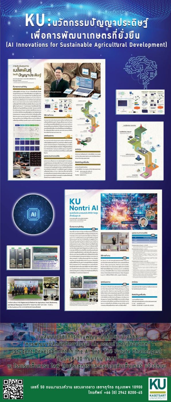 | 8 | KU Nontri Ai : ขุมพลังประมวลผลประสิทธิภาพสูงสำหรับยุค AI | รองศาสตราจารย์ ดร.อนันต์ ผลเพิ่ม ผู้ช่วยศาสตราจารย์ ดร.อภิรักษ์ จันทร์สร้าง สำนักบริการคอมพิวเตอร์ มก. |
